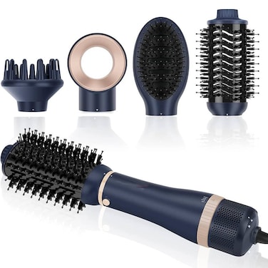 4 in 1 Hairdryer Hot Air Brush Set, Styler Set, Hairdryer Brush with 4 Attachments For Drying, Smoothing, Volume and Styling, Ion Care Blue