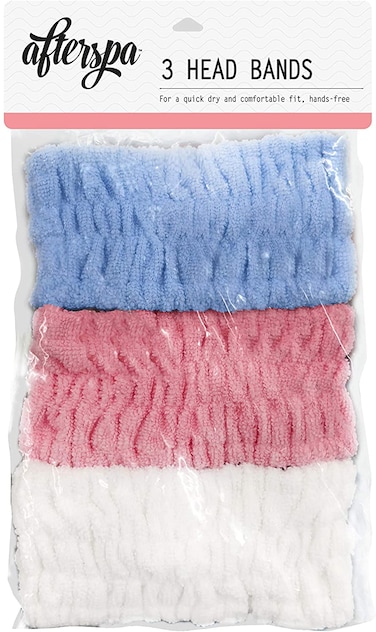 - Afterspa Beauty, Head Bands 3 Pack, White, Pink, Blue, My Spa At Home