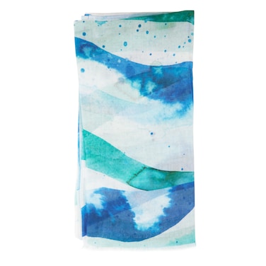 BiggDesign - AnemosS Wave Shawl, Ethnic Pattern, Blue Color, 90 x 170 cm