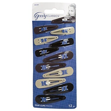Goody Classics Hair Snap Clips, Metal, 12 Pieces, Brown, Black, and Tan