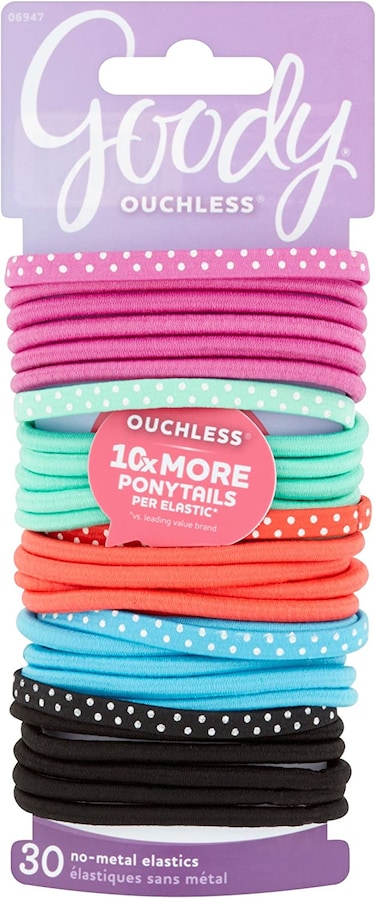 Goody Ouchless No Metal Elastics, 30 Count Colorful Solids & Dots