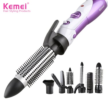 KEMEI-KEMEI Hair Dryer Curler Straightener Brush Curling Iron Straightening Styler 7 IN 1 Detachable Brush Kit with Interchangeable Brush Head Electric Hair Styling Tools