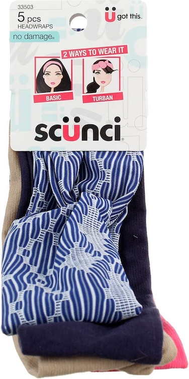 Scunci Mixed Texture Basic & Turban No Damage Headwrap-5 pieces-No damage to hair2 ways to wear it:-Basic-Turban