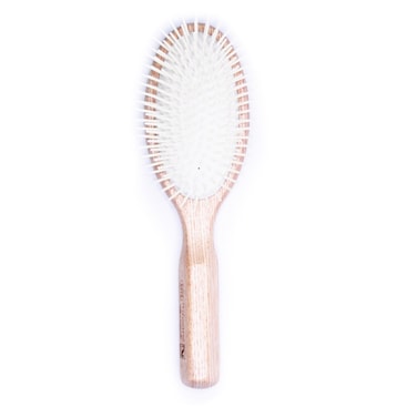 <li>Ash wooden handle.<li>Large oval handle.<li>Two colors plastic pins rubber cushion.