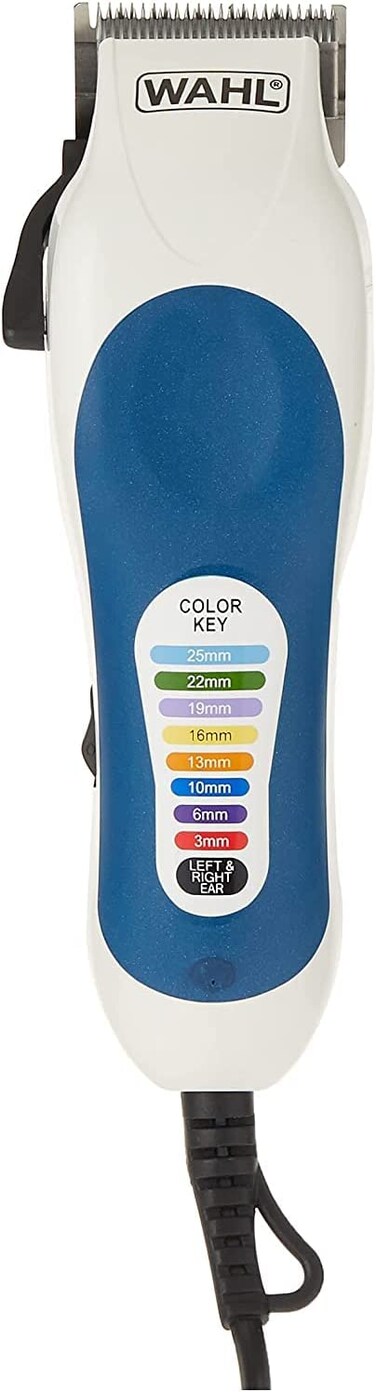 WAHL Color Pro Corded Hair Cutting Kit is an ideal hair clipper for men. It's color design provides quick identification when selecting the guide comb you need. Get professional hair cutting results with precision ground, self-sharpening high carbon-steel blade set. Powerful and long-life vibration motor for non-stop use than most standard clippers. Easy cutting length adjustment 1 - 3 mm using taper lever. 8 color coded attachment combs , 3, 6, 10, 13, 16, 19, 22 and 25 mm, attachment combs for right and left ear, eye brow comb and accessories. The WAHL Color Pro Corded Hair Cutting Kit Includes: