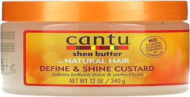 CANTU SHEA BUTTER DEFINE & SHINE CUSTARD 12oz. Cantu Define and Shine Custard is made with 100% Pure Shea Butter and formulated without harsh ingredients, Cantu for Natural Hair restores your real, authentic beauty. Embrace your curly, kinky, or wavy hair with Cantu for Natural Hair. No Mineral Oil, Sulphates, Parabens, Silicone, Phthalates, Gluten, Paraffin, Propylene. Formulated to infuse curls with moisture for superb definition and brilliant shine. Plus, reduces hair bulk, elongates curls, and provides enough hold for great second and third day styling! Set Contains: 1 x Cantu Shea Butter Natural Define & Shine Custard 340g