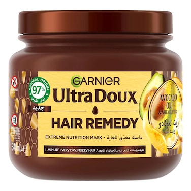 - Hair Remedy Extreme Nutrition mask With Avocado Oil known for its softening properties and Shea Butter is known for its great nutritional benefits blended into our mask it intensely nourishes very dry or frizzy hair for frizz-free and tamed hair