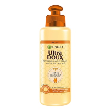 - Garnier Ultra Doux Honey Treasures Leave-In Cream associates: Repairing royal jelly known for its strengthening properties, protective propolis a natural sealer made by bees and Nourishing Honey known over the ages for leaving the hair light, soft, and supple