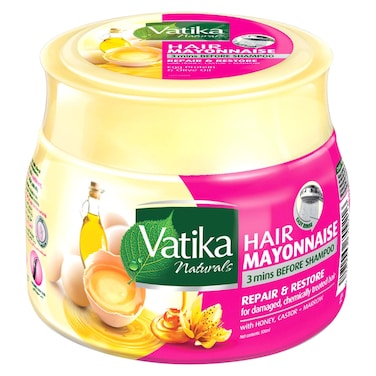 • The Vatika repair and restore hair mayonnaise is an everyday pre-shampoo solution for nourishment and conditioning