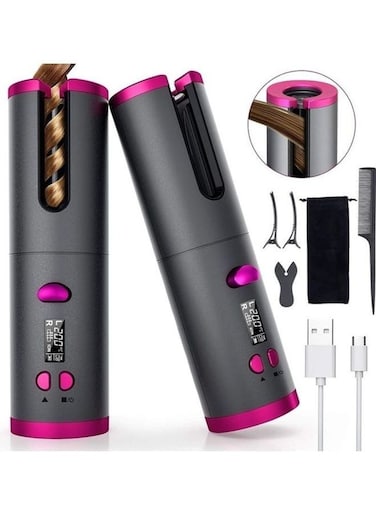 Generic Automatic Cordless Auto Hair Curler With Accessories Black/Pink