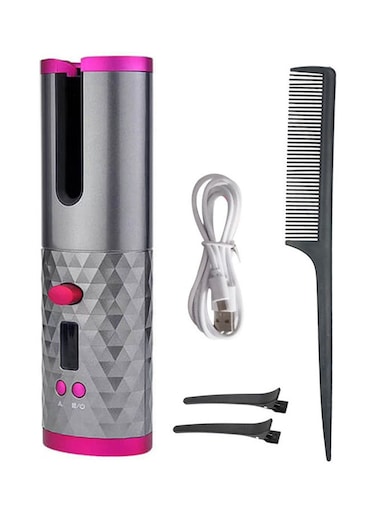 Generic Cordless Auto Rechargeable Curler Silver/Pink 25X9X11Cm