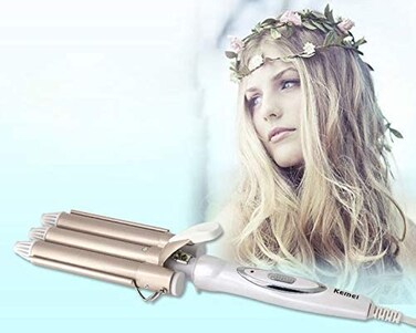 Generic Curling Iron 3 Barrel Ceramic Curling Wand Water Ripple Shape For Long Hair Ladies Big Waves Ptc Fever Anti-Scald Bracket And Tip (Gold)