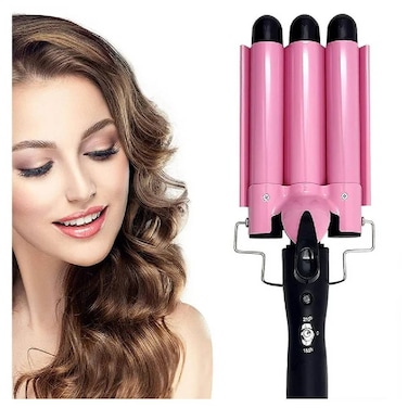 Whether you have short or long locks; thick or thin, this three barrel curling iron works like a charm. The heated ceramic produces negatively charged ions that create soft, shiny waves without any frizz. And unlike single barrel styling irons that take ages to curl hair, this 3 barrel curling iron does it in a matter of minutes.