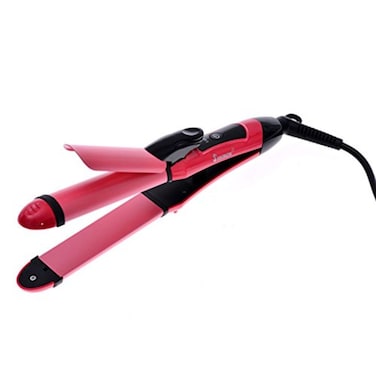 Szsyr-Mini Lcd Hair Curling Tong 2 In Straightener And Curler Iron Ceramic Wave Salon Maker - Red
