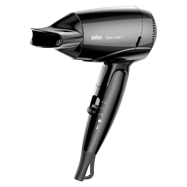 Big on your hair. Small in your bag.The foldable travel dryer packs light and really compact. It gives you the freedom to dry and style whereever you want to look great.Professional style nozzleStyling nozzle for accurate styling.Infrared heatingThe Braun Satin Hair 1 Style&Go travel dryer works with an infrared heat source that prevents hot spots and dry-out.Multivoltage lets you plug in and style everywhere.Different countries, different voltages: The Braun Satin Hair 1 Style&Go travel dryer handles everything the local plug delivers. Multivoltage for a powerful performance wherever you go.2 heat settingsFor drying and styling flexibility.