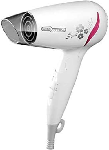 Super General 1400W Powerful Hair Dryer, Foldable Travel Blow-Dryer Wth Overheating Protection, White, SGHD-1400-P, 1Year Warranty
