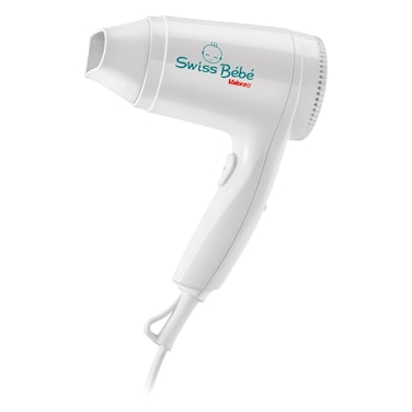 The ultra-delicate infant hair and body dryer the swiss bebe hairdryer has been developed specifically for baby care. Drying hair and body with swiss bebe is: safe - tepid temperature: only 45 c (ca. 70 c standard hairdryer) gentle - weak airflow: only 10 l/s (ca. 17 l/s standard hairdryer) silent - low noise level: only 68 db(a) (ca. 78 db(a) standard hairdryer) technical features: 500 w ripple wire security heating element 2 air flow/temperature settings on/off push button concentrator nozzle.