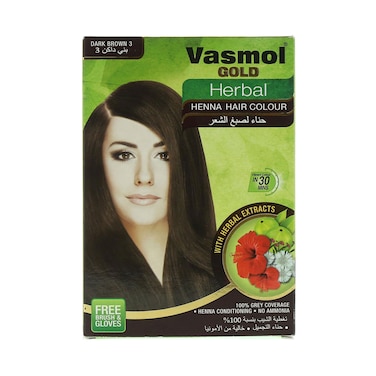 Vasmol Gold Herbal Henna Hair Colour 3 Dark Brown