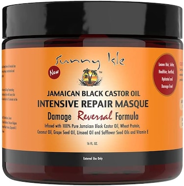 Is your dull, dry hair keeping your style under wraps? Don't cover it, "masque" it with our brand-new formula, Sunny Isle Jamaican Black Castor Oil Intensive Repair Masque! This deep-penetrating treatment is a potent blend of natural ingredients, infused with Jamaican Black Castor Oil to hydrate, nourish and repair even seriously damaged hair, leaving it softer, healthier and stronger. So whatever your hair type or texture, don't hide it, "masque" it ... and uncover your most beautiful hair yet! Sunny Isle JBCO Intensive Repair Masque is hair rehab in a jar! Features & Benefits: Infused with authentic, organic Jamaican Black Castor Oil Stimulates hair growth Hydrates hair from root to tip Repairs badly damaged hair Excellent for use on all hair types and textures Key Ingredients: Sunny Isle Original Jamaican Black Castor Oil Wheat protein Safflower oil Coconut oil Grape seed oil Linseed oil