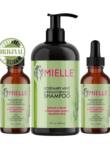 Mielle Organics Rosemary Mint Strengthening Set 2 Oils + Shampoo Infused With Biotin Cleanses And Helps Strengthen Weak And Brittle Hair 473ml