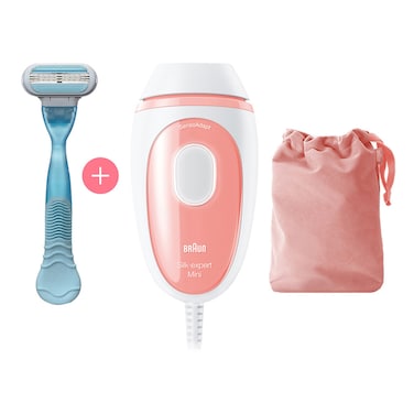 Braun Silk-Expert Mini IPL Hair Removal PL1014 with 2 Extras Shaver Heads and Venus Smooth Razor Travel Pouch