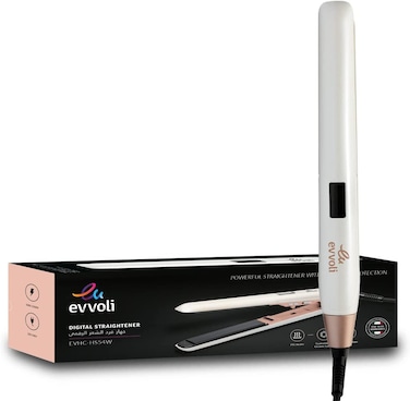 evvoli Hair Straightener, Ceramic Coated, PTC Heater, Ionic Feature, LCD display, Temperature auto lock function, EVHC-HS54W
