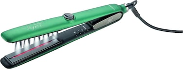 Professional high temperature straightener with steam emission and infrared technology: it promotes the penetration of heat with maximum respect for the hair and ensures silky, shiny and elastic hair. Perfect smoothing and defined waves thanks to the rounded profile of the highly smooth ceramic plates. The temperature can be adjusted from 120 C to 230 C for a personalized style based on each type of hair. Large digital display with indication of the temperature and status of the water tank. Safety lock and 360 rotating fairlead . Universal voltage 100-240V.