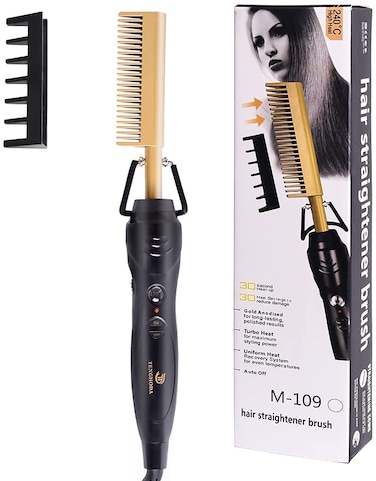 Premium Ceramic Hair Straightener Brush Comb with Auto Shut Off(Gold)