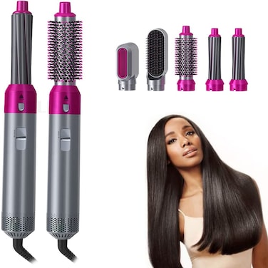 5 In 1 Hair Curler Rotating Hair Dryer Hair Straightener Comb Curling Brush 5 interchangeable barrels, 3 adjustable modes, 30S heating, smoothing iron styling tools