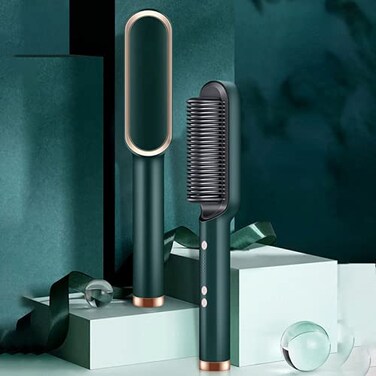 - LOOX Professional Brush Hair Straightener Ceramic Electric Straightening Beard Brush Fast Heating Curler Straightener Comb Styler (Green)