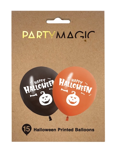Party Magic 15 Halloween Printex Latex Balloons - made from natural rubber latex. Perfect for Halloween party décor.