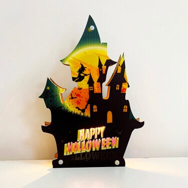 Happy Halloween Wooden Castle LED Light Décor 24x17cm