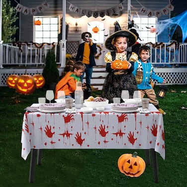 Uaejj Halloween Decorations, Scary Party Decoration Set, Bloody Halloween Party Supplies Include Bloody Handprint Stickers Banner Bloody Tablecloth, (B-Tablecloth)