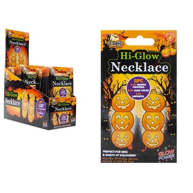 The Haunted House Hi-Glow Necklace Orange Pack of 2 is the perfect accessory for any Halloween party or haunted house event.