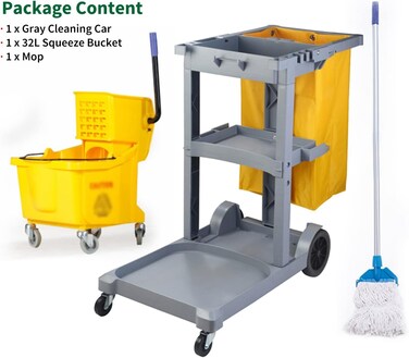 AKC Trolley Multipurpose Cleaning Trolley with Squeeze Bucket& Mop, Hotel Restaurant Laundry Trolley, Load Bearing 60kg Large Capacity Utility Cart