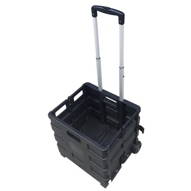The HK Folding Shopping Trolley in black is a convenient and practical solution for carrying heavy loads.