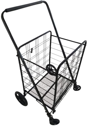 Upspirit Fold-Able Shopping Trolley Push Cart With Wheels,Folding Collapsible Grocery Storage Cart, Hand Cart For Daily Use,Black 80Kg Max Load