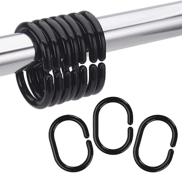 24 PCS Shower Curtain Rings Plastic Shower Curtain Hooks for Bathroom Shower Rod - Black