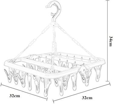 - <p>[Durable]Load-bearing chain components are thick and flexible, detachable combination, length adjustment.<p>[Space Saver]- Foldable design, hangers can be folded and stored, it is easy to be organized when not in use, space saving.<p>[360° Rotatable Hook]- 32 non-slip clips, 360 degree rotation, steel rebound, good shape, strong clip, convenient and comfortable to use.<p>[Windproof]- The windproof self-lock design keeps itself in place even in the outdoors.It is easy to reach your laundry items from any direction.<p>[Multiple-Use]- Clip and drip hanger could be used for drying small things such as socks, lingerie, underwear, hand towels, scarves, baby diapers, etc. Perfect for daily household use, also great for trips.<p>AIWANTO Brings You Daily Necessities at A Great value.<p>Features: 1. Designed as both a space-saver and a money saver. Do not expose to the sun or rain for a long time, put it back indoors for safekeeping after use. It will be the best helper for your family Laundry. 2. Our drying hanger was designed with a convenient rotating neck that can be rotated 360° and this humanized design makes it easy to reach your Laundry items from all directions. Clips with Scientific spacing and breathability are perfect. 3. Our clip and drip hanger made of high quality plastic. Light-weight, Sturdy and Durable. The 32 clips with high-elastic springs stretch clips hold items tightly. Plastic clips with fine-grained, non-slip teeth will not leave marks on your beautiful clothes. 4. Our drip hanger with 32 sturdy clips, hang up to 32 small items in 1 compact space for for multipurpose drying or storage. The Hanging design saves valuable space. The folding design allows the clothes drying hanger to be folded for easy storage when not in use. 5. The large plastic hook allows you to hang it anywhere such as clothesline, shower curtain rod, garment rack or shelf, fits all closets and perfect for apartments. Fits in hanging towel, underwear, panties, bras, tie, socks, masks or other small items. Drying hanger with clip suitable for both indoor and outdoor use, it is ideal for housewives! Specifications:<p>Size: 32x32x34cm<p>Color: Blue<p>Material: Plastic<p>Product Type: Drying Hanger<p>What's in the Package: 1 x Drying Hanger with 32 Clips