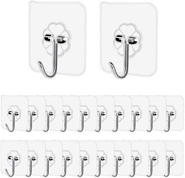 Stylish Adhesive Wall Hooks, almost trace-less and invisible.It is backside super adhesive traceless solid glue.Solid stainless steel and PC construction, ensuring quality and longevity. Small and light design, Strong bearing weigh, No falling off.No tools and No nail No drilling Seamless Sticky Wall Hooks, Just stick onto the wall and squeeze all the air bubble out, Simple work by hand.