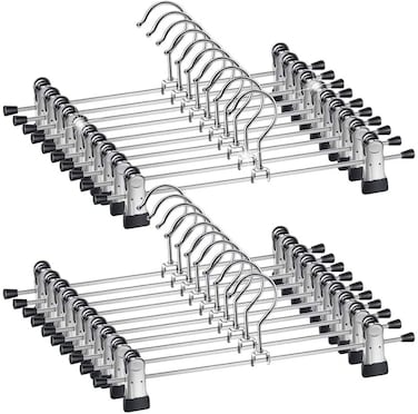 with 2 adjustable clips that can rotate 360 °, you can move the clip to fit different sizes of your pants, skirt, hat, tie or kid clothes you want to hang.