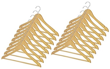 Product description Organize your closet in style with Whitmor's set of 16 wood suit hangers. These hangers are made of solid hardwood with a polished chrome swivel hook. Multiple coatings of lacquer create a smooth snag free finish. Each hanger features a slim, space-saving body, a trouser bar to hold slacks and a set of notches to securely hang tops with straps. Brand Story By Whitmor