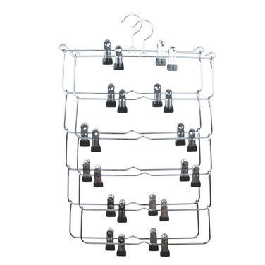 ZOBER 6 Layer Metal Clip Pants Hanger Stainless Steel Hangers with rubber coated clips Hang scarfs, pants, trousers, jeans etc. (PACK OF 2)