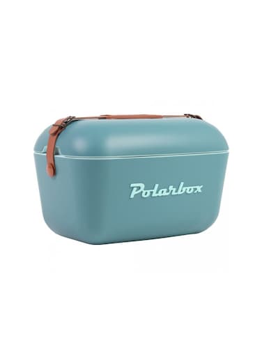 Polarbox Classic Cooler Box with Leather Strap, Blue - Marine Green Rigid Thermal Insulated Ice for Beach, Picnic Party Convertible Lid Polypropylene Insulation 12L PB-9311