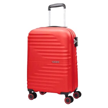The American Tourister Twist Waves Spinner Trolley in Vivid Red is a stylish and functional travel companion. With its 55cm size, it is perfect for carry-on luggage.