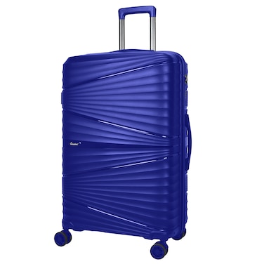 Hard Case Medium Checked Luggage Trolley For Unisex Polypropylene Lightweight 4 Double Wheeled Suitcase With Built In TSA Type Lock Travel Bag KH1005 Navy Blue