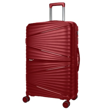 Hard Case Medium Checked Luggage Trolley For Unisex Polypropylene Lightweight 4 Double Wheeled Suitcase With Built In TSA Type Lock Travel Bag KH1005 Wine Red