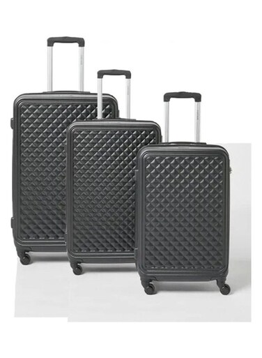 Partner 3-Piece Textured Checkered Luggage Trolley Set, Black