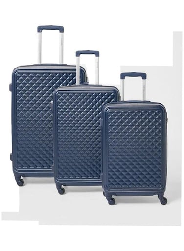 Partner 3-Piece Textured Checkered Luggage Trolley Set, Blue