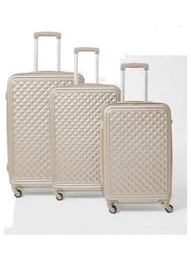 Partner 3-Piece Textured Checkered Luggage Trolley Set, Champagne